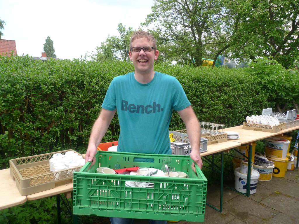 Während über den Nachmittag verteilt geschätzt über 200 Menschen die Leckereien ausprobierten und sich im Anschluss meistens noch ein köstliches Stück Kuchen und einen Kaffee gönnten, hatte das Team „Abwasch“ permanent eine logistische Meisterleistung zu bewerkstelligen. Gebrauchtes Geschirr musste den Weg hinter die Seemannsmission finden, von Essenresten und Papierservietten befreit werden und anschließend nach einem ausgeklügelten System abgewaschen werden. Bei der Vielzahl an Geschirr eine schweißtreibende Aufgabe!